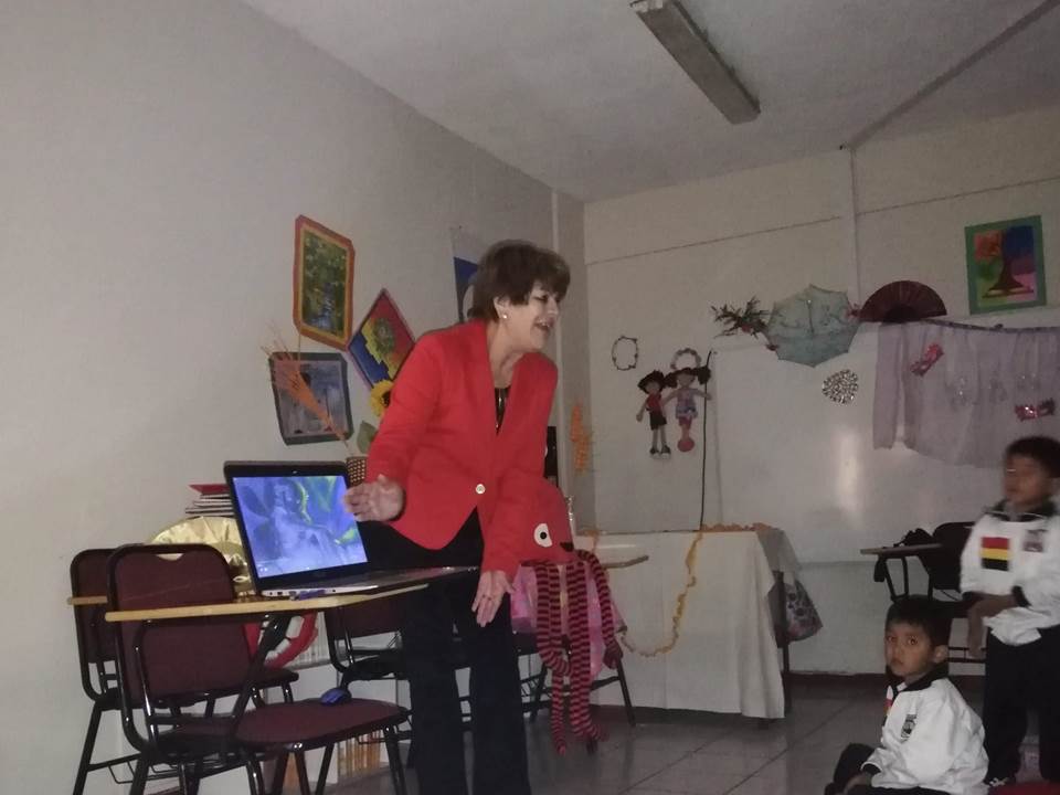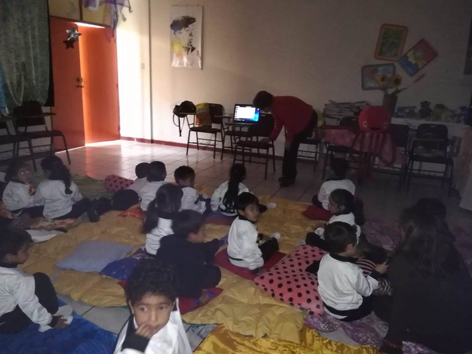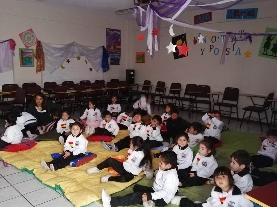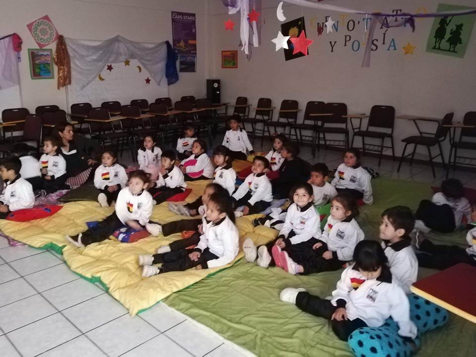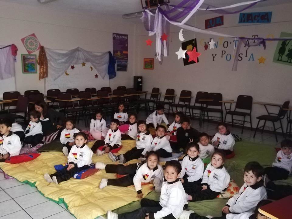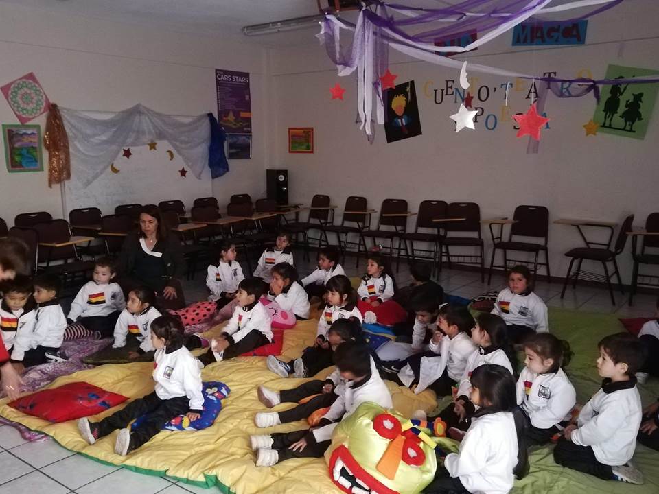 Con motivo de la celebración del Mes del libro y la Lectura, los alumnos (as) del Pre Kínder “C” junto a sus educadoras Sra.Claudia Alfaro y Sra. Carol Acuña asistieron el día 16 de abril a una jornada de Cuenta- cuentos en el “Aula Mágica” de la Enseñanza Media, oportunidad en que los más pequeñitos de nuestro Nivel pudieron disfrutar de la magia de los cuentos, la música y dibujos animados, actividad que estuvo a cargo de la docente de Lengua y Literatura Sra. Antonia Tello. Un cuento basado en la importancia de las emociones dio vida a esta iniciativa que pretende incentivar la lectura desde la más tierna infancia.