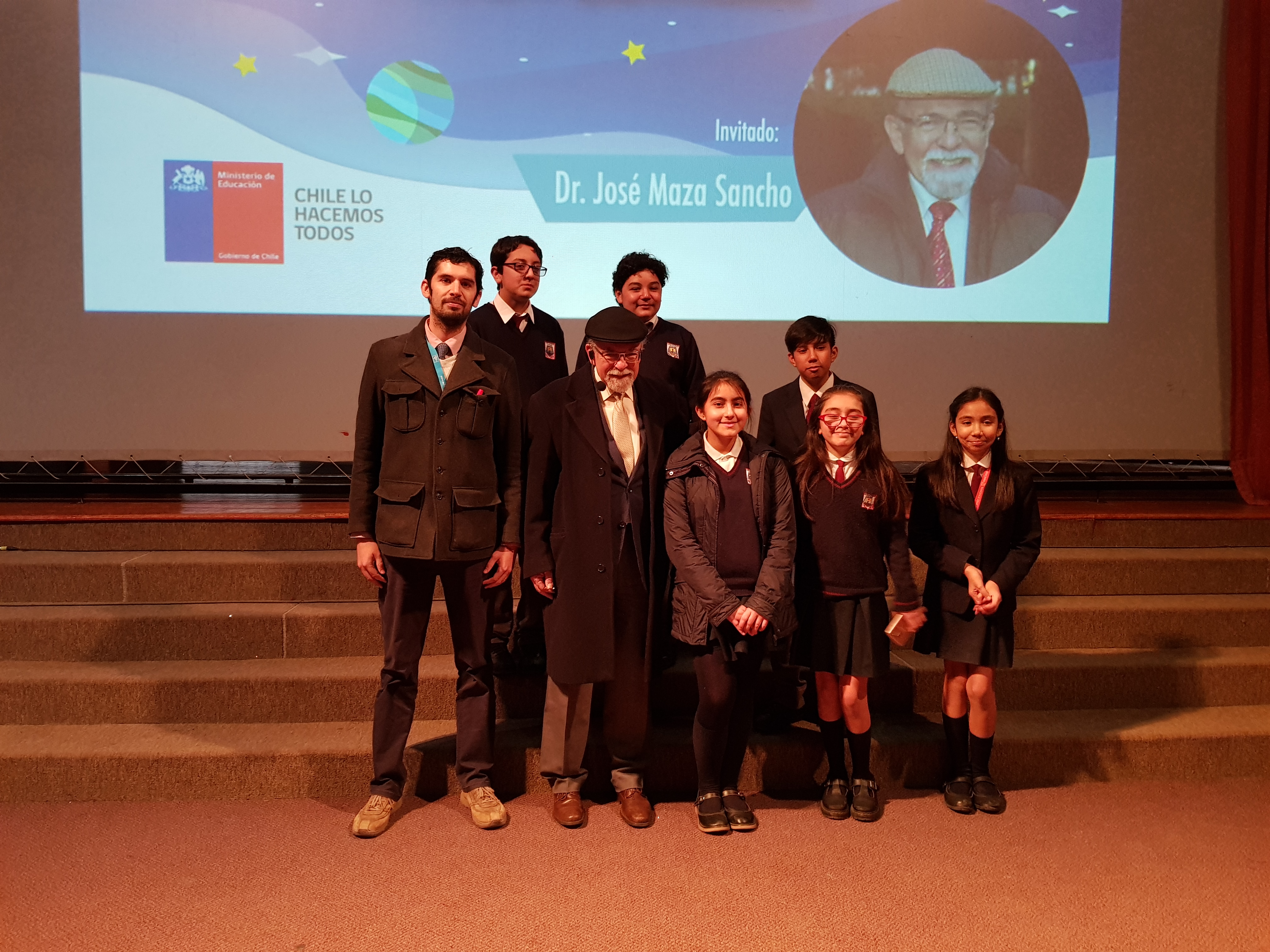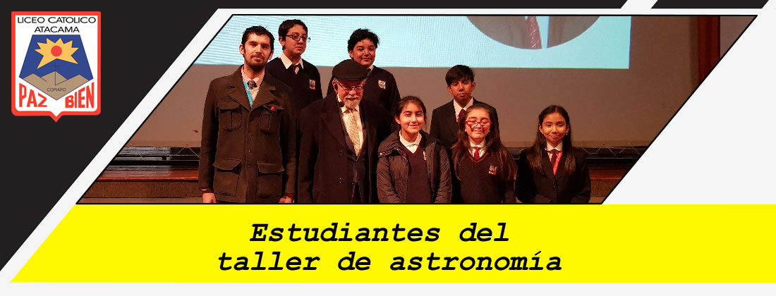 "Los estudiantes del taller de astronomía del Liceo Católico Atacama participaron el día martes 04 de junio de una charla dictada por el gran divulgador científico chileno Dr. José Maza Sancho astrónomo y académico de la Universidad de Chile. También cabe destacar que al finalizar la charla don José Maza y los niños pudieron interactuar de manera cercana y amena, firmó autógrafos, libros y contesto cada pregunta que los estudiantes hicieron".